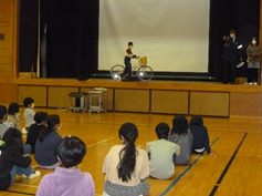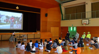 3年生以上は、まず、自転車の安全な乗り方についてDVDを見ました。次に、実際の自転車を使って、点検の仕方や、安全な乗り方について教えていただきました。
