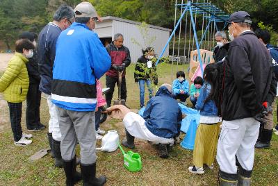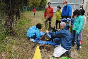 今回は、学童の子どもたちを中心に植えましたが、まだ、植えていない木もあります。学校が再開したら、みんなで植えましょう!!