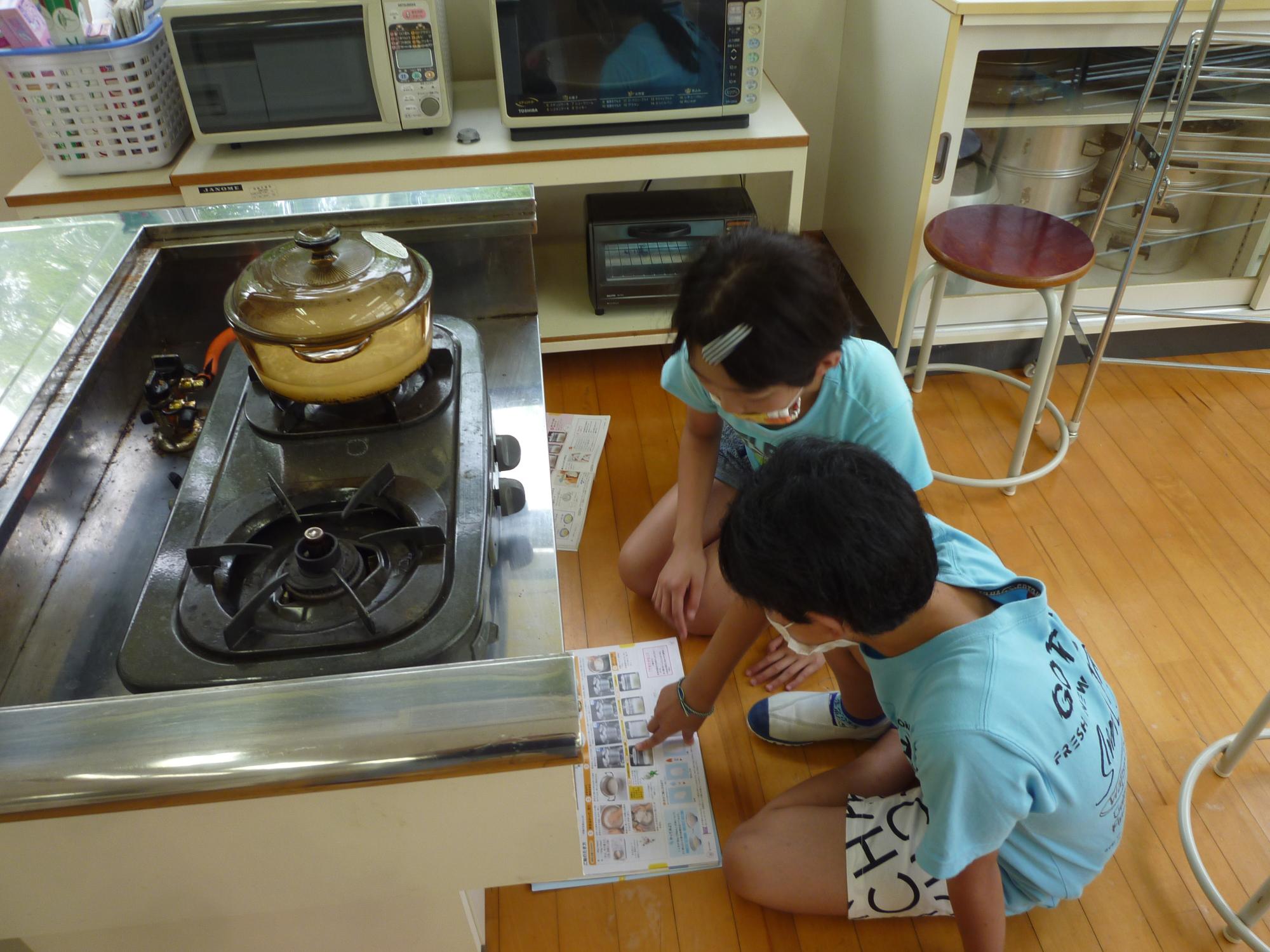 自然学校の飯盒炊飯に向けて鍋でご飯をたきました。