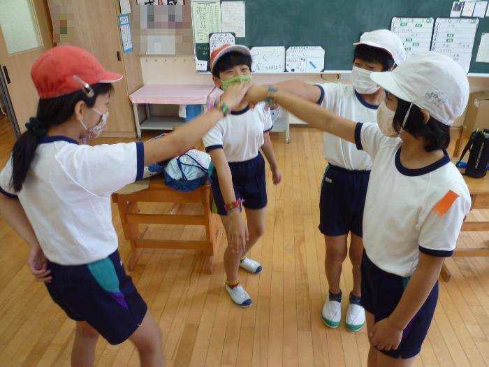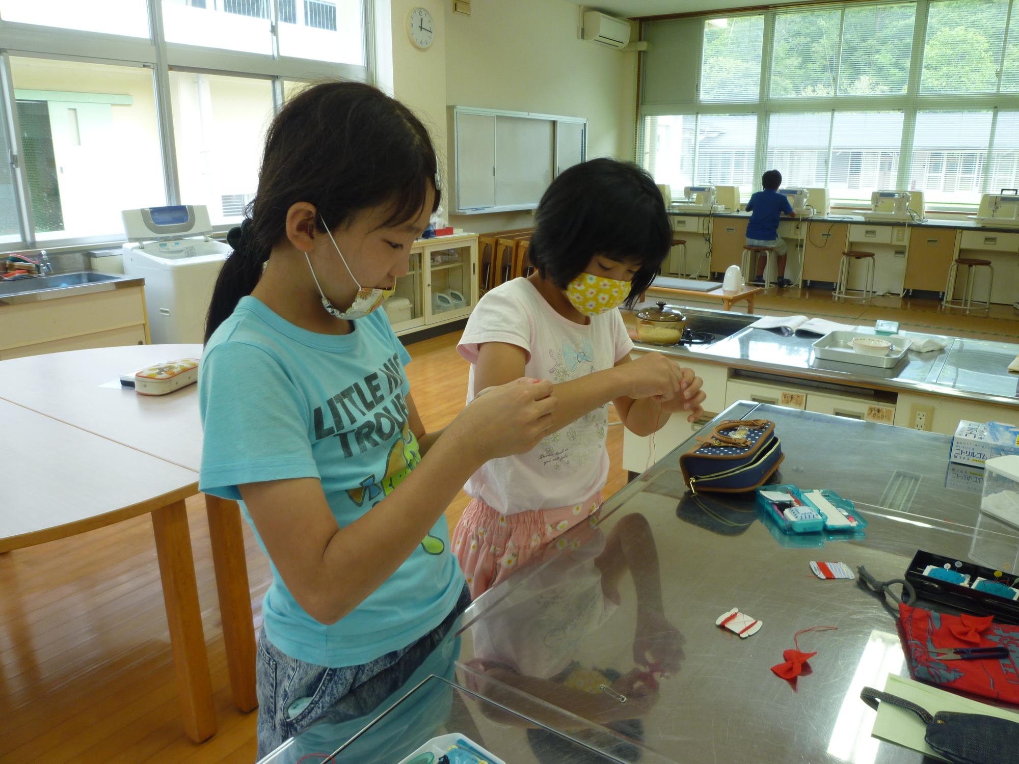 5年生は、自然学校で使うリボンも自分たちで作りました。