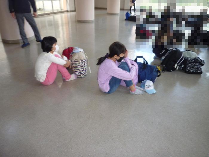 出発の日、比延小学校で出発式をしました。少し緊張気味です。