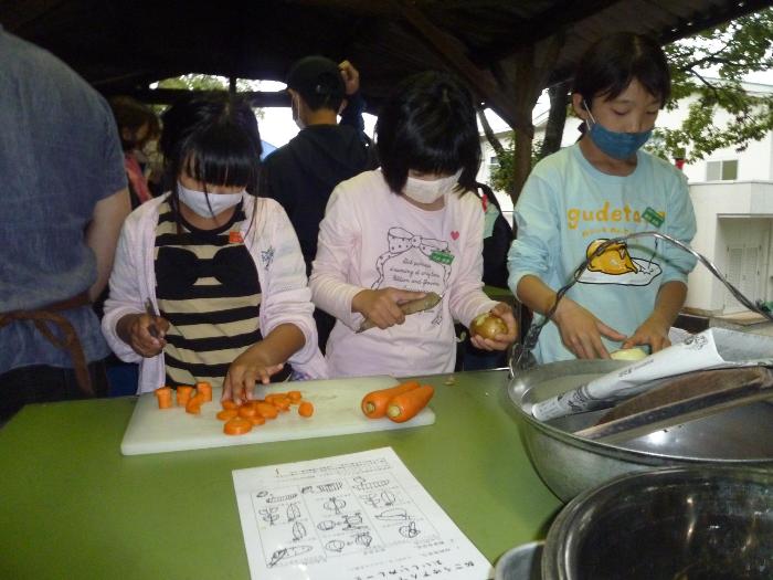 班のメンバーと協力してカレー作りにチャレンジしました。