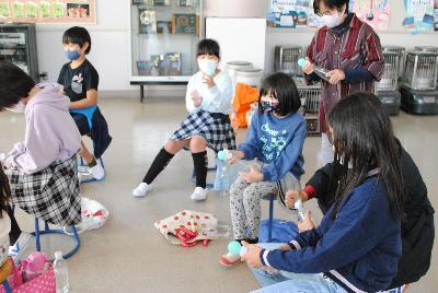 11月19日、比延小学校に「サイエンストライやる」に行ってきました。コロナ対策もあり、4年生同士の交流活動はできませんでしたが、ご覧のようにたくさんの実験を見せてもらいました。