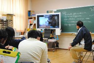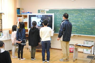 2月15日に日本盲導犬協会の方とオンラインで交流しました。視覚障害のある方の見え方や、盲導犬の仕事内容について説明を聞きました。そのあと盲導犬のユーザーさんの自宅にリモートし、盲導犬への食事などの生活場面を見せてもらいました。オンラインだからできた学習内容でした。