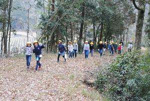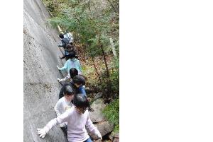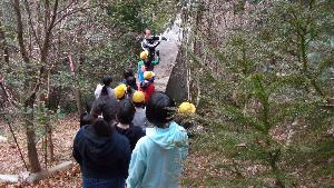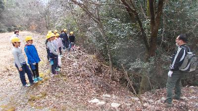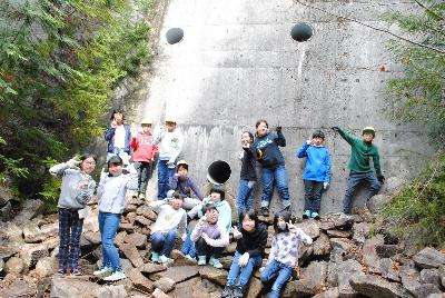 学校の近くの山にある砂防ダムへ出かけました。大雨で数十年前には、この地域で大水害がありました。土石流を止めるために、こうした砂防ダムが2か所作られていました。実際に下りてみるとその大きさにびっくりしました。