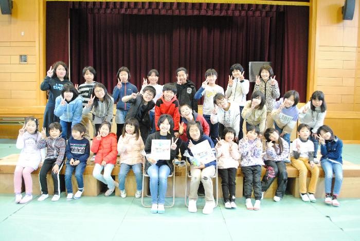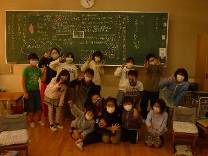 本来なら山登りのはずでしたが、雨のため学校で行われた卒業を祝う会。それでも最後はこの笑顔。みんなの思いが6年生に届いたようですね。