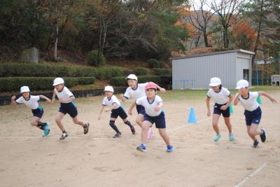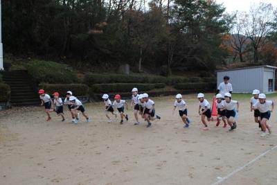 雨で一日延期となったマラソン大会、5・6年生は2500メートルです。完走目指して勢いよくスタートです。