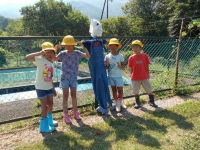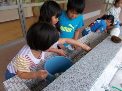 7月の2年生は、実際に体験しながら学習しました。算数の「かさ」の学習では、色々な容器の量をますを使って図ったり、生活の夏野菜作りでは、野菜を動物から守るために案山子を作ったりと、実際に体験しながら学習しました。体験することで発見することもあり、楽しい学習になりました。