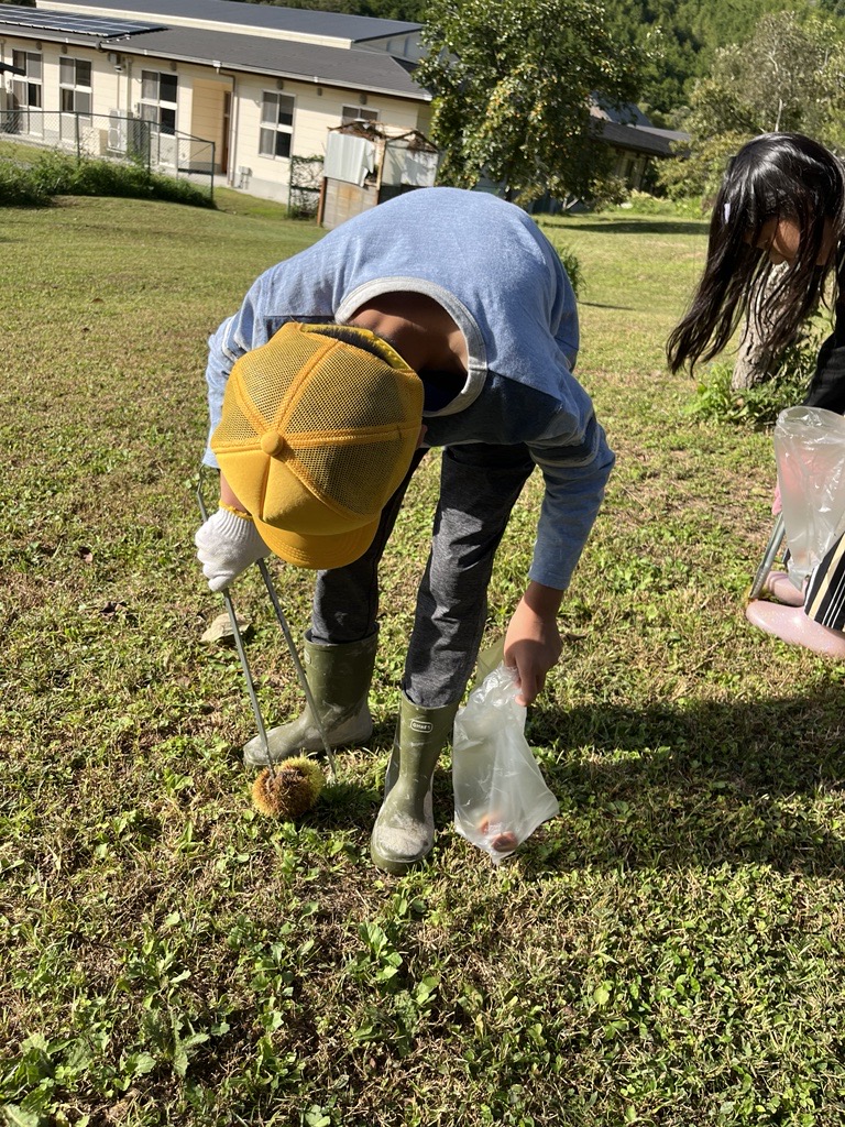 また、里山の栗や柿が今年は豊作で、みな喜んで収穫していました。1学期に植えたさつまいもも収穫でき、おいしい季節の到来にみな満面の笑みでした。