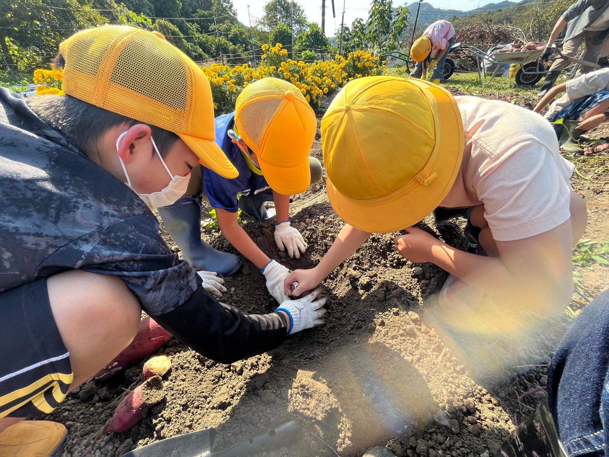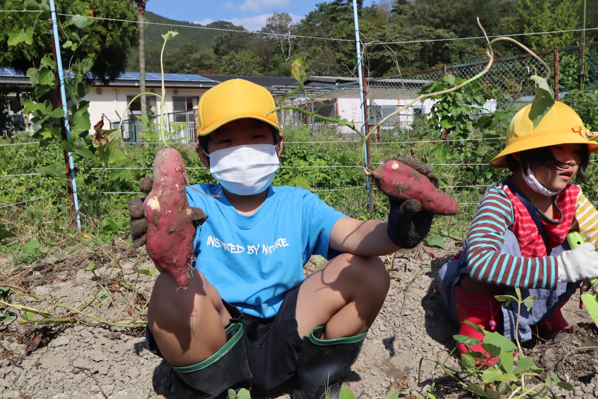 毎年恒例のさつまいも掘り。今年のいもは大きめでした。