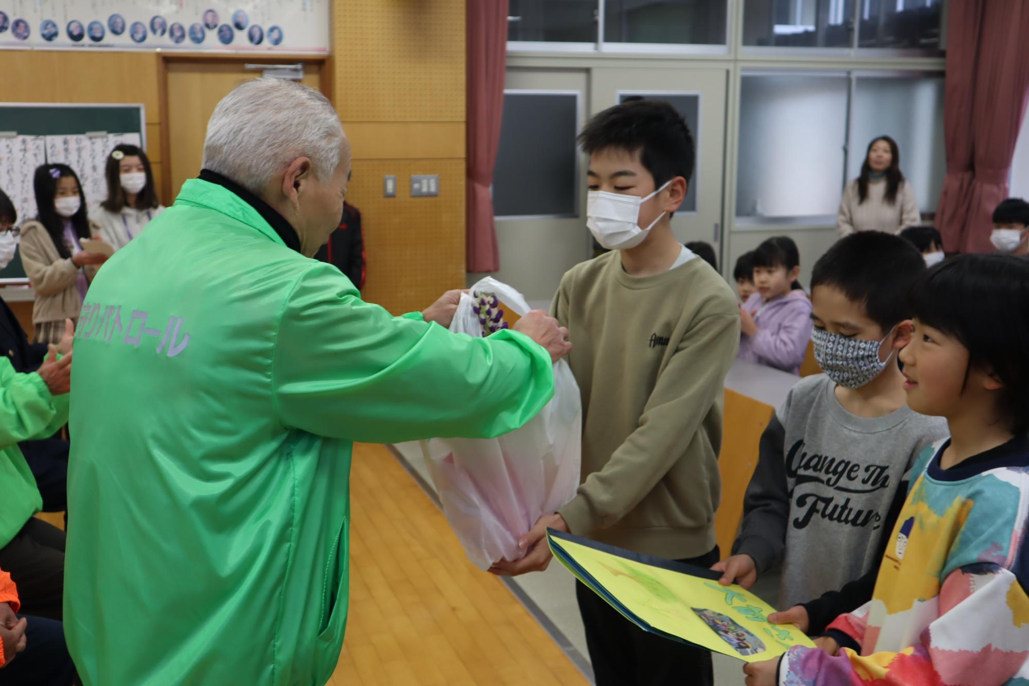 いつもお世話になっている地域の方々へ、お花とメッセージカードを贈りました。「ありがとうの花」の歌のプレゼントもし、日頃の感謝の気持ちを伝えました。