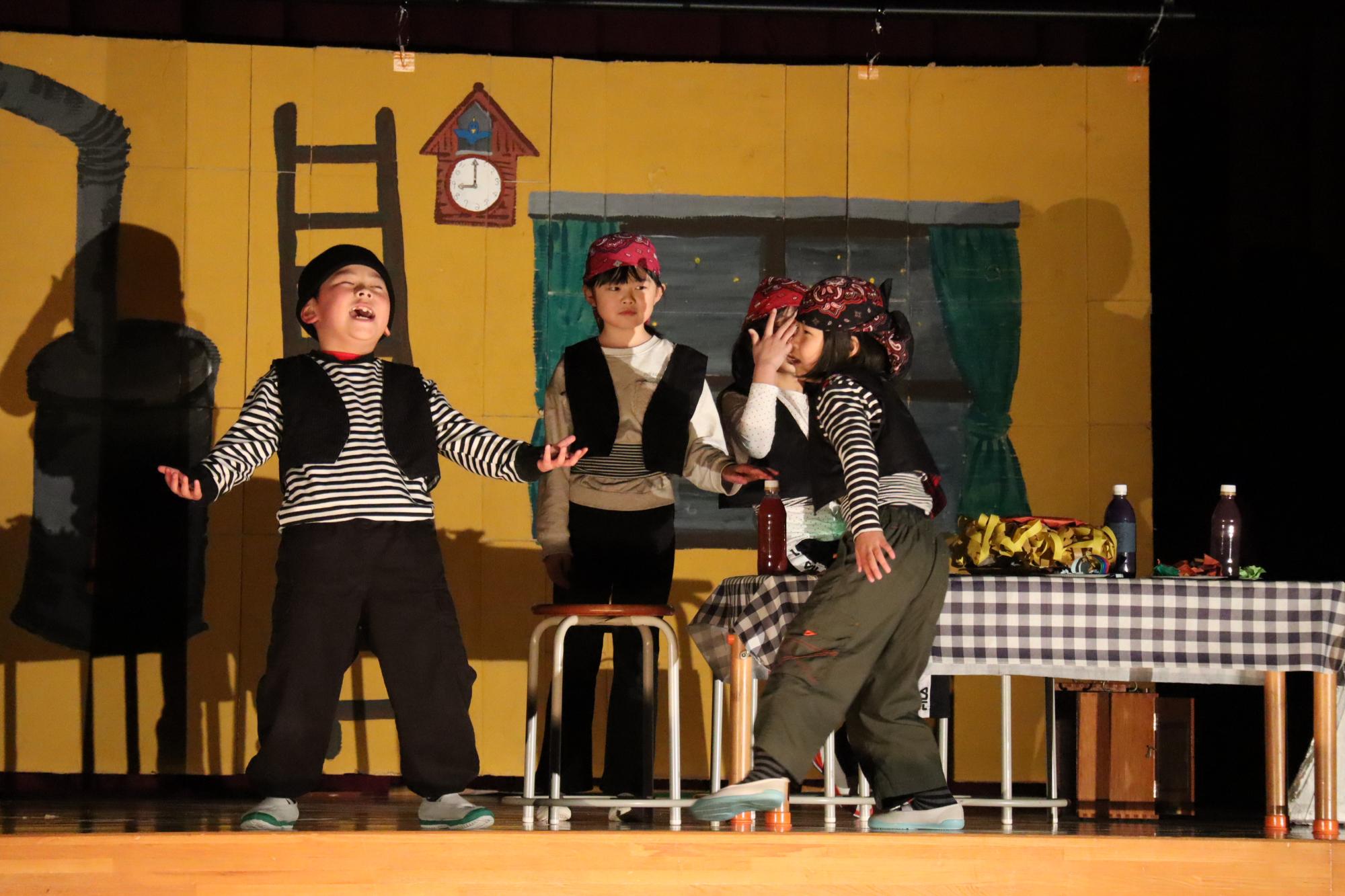 2月3日に、1年間の学びの集大成となる学芸会を行いました。この日まで、子どもたちは自分たちの成長した姿を見てもらおうと、準備と練習に励んできました。当日は、たくさんのお客さんに来ていただき、力のこもった演技を披露することができました。多くの拍手とお褒めの言葉をいただき、子どもたちも達成感を味わうことができました。