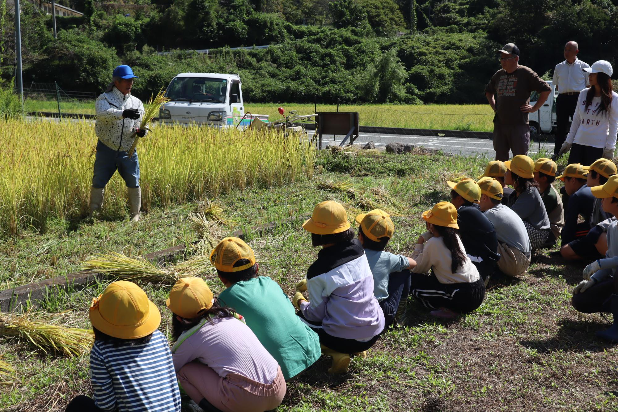 地域のかたに稲刈りの仕方をレクチャーしていただきました。