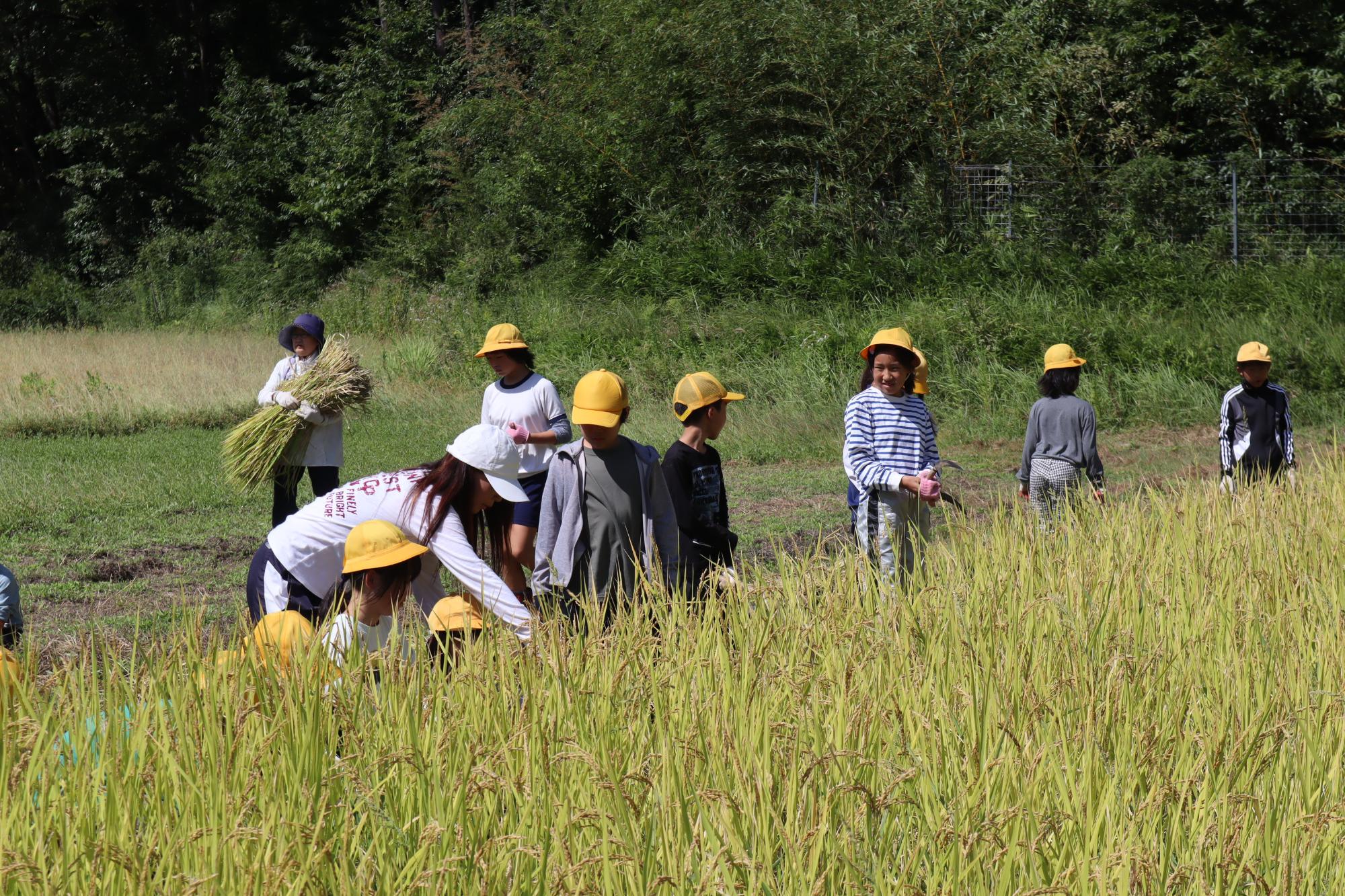 9月26日に全校生で、稲刈をしました。6月初旬に行った田植えから4か月足らず。稲穂も黄色く色づきずいぶん大きく育ちました。