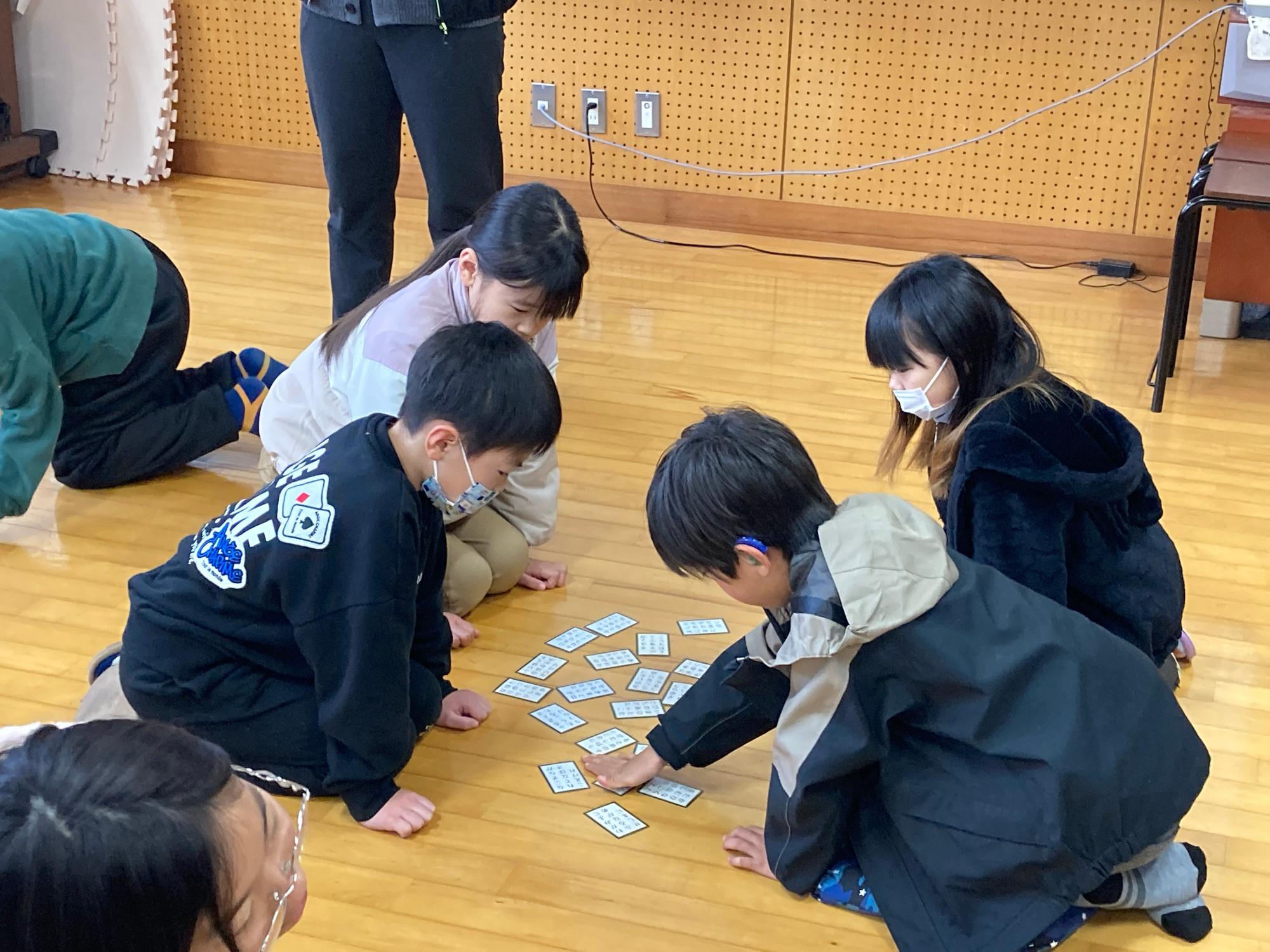 1月24日にかるた・百人一首大会を行いました。1・2年生はかるた、3~6年生は百人一首をしました。チーム対抗戦で行い、「たくさん取れた。」「これだけしか取れなかった。」との声もありましたが、全員で季節の遊びを楽しむことができました。