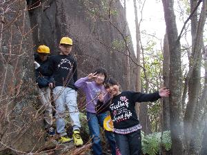 この岩がこぐり岩です。1.2年生はここまでで、少し遊んでから下ります。