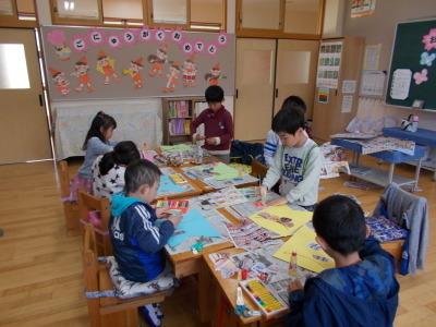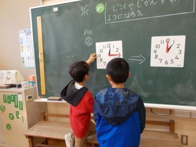 1・2年生が一緒に学習するときは、2年生が丁寧にアドバイスをしています。優しいお兄さんが4人もいて、1年生もうれしそう。