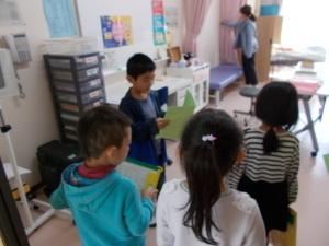 2年生が、1年生を学校探検に連れていってあげました。どこを紹介するのか、どうすれば1年生が喜んでくれるか、4人で一生懸命相談して探検場所を決めました。1年生も、「楽しかった。2年生ありがとう。」と感想を述べていました。