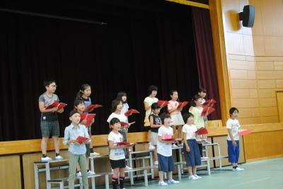 姿勢、声の大きさ、速さ、抑揚など、自分たちで考えた工夫がいっぱいです。堂々と朗読する姿に15人の団結力が見られ、大きく成長した朗読会でした。