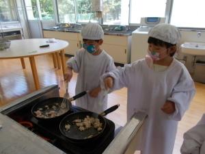 生活科で夏野菜を育てました。今年は、雨がよく降ったおかげで、豊作でした。みんなで調理し、おいしくいただきました。