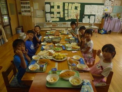 みんなで収穫した夏野菜を調理し、おいしくいただきました。