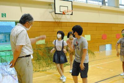 ゲームの後は、校長先生、教頭先生、各クラスの願いごとを発表しました。そして、赤白グループに分かれて、一人一人の願いごとを発表しました。