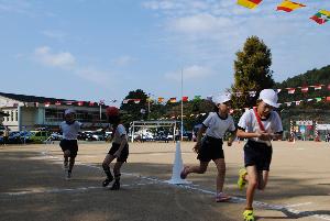 低学年リレー。バトンパスも練習通りできました。