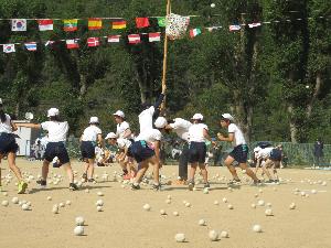 運動会といえば玉入れ。