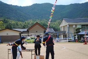 消防団による障害物競走です。子どもたちも楽しみにしています。