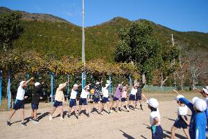 走る前に高学年による「エイエイオー」のコール。やる気が出ました。