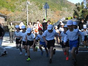 中学年の1.7キロのスタートです。応援の方も多いです。