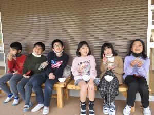 マラソン大会が終わってから、きな粉やあんこのおはぎをいただきました。材料のもち米は、3・4年生が作ったものを使用しました。