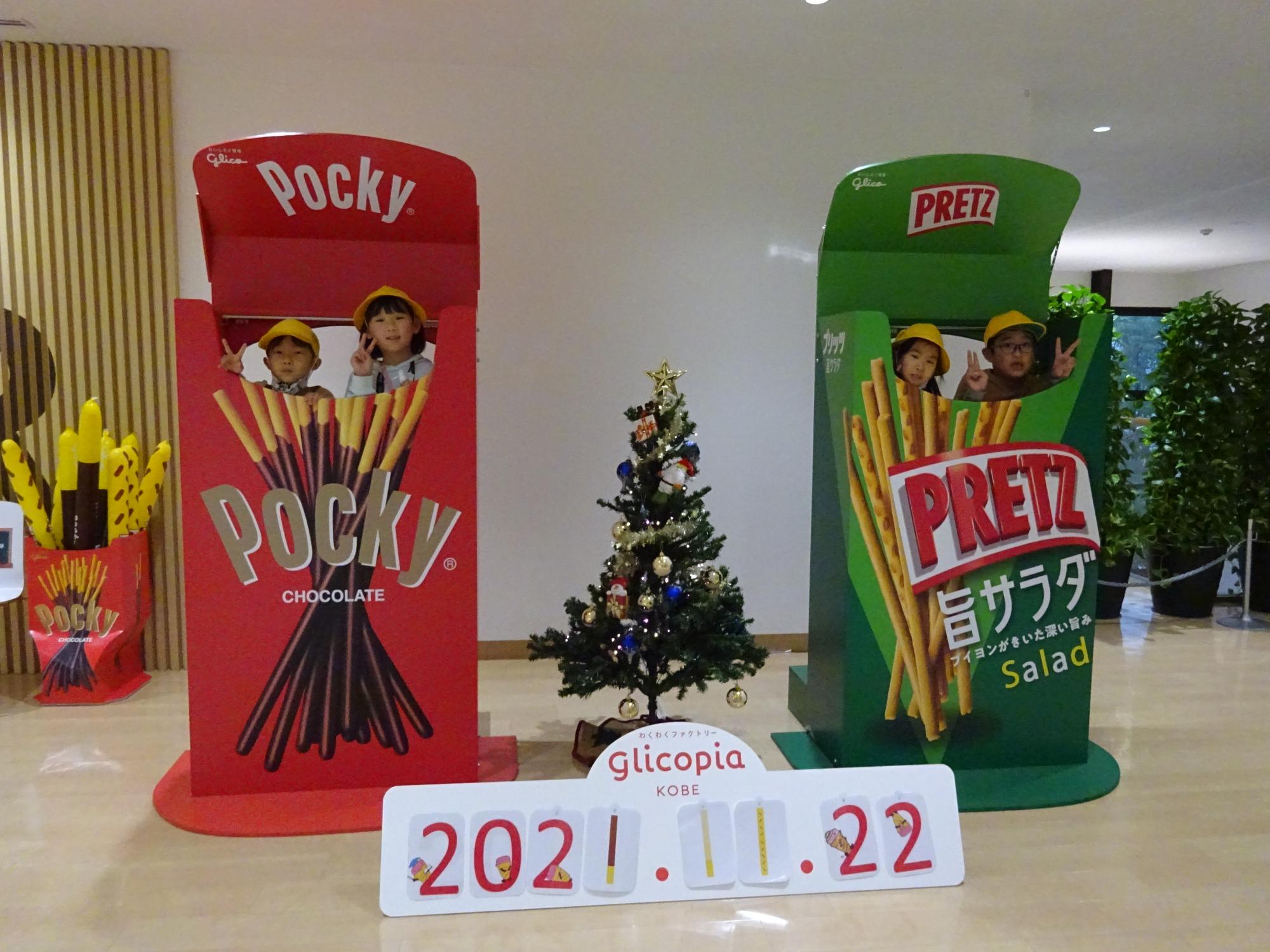 ポッキーとプリッツの中に入って、はい、チーズ!