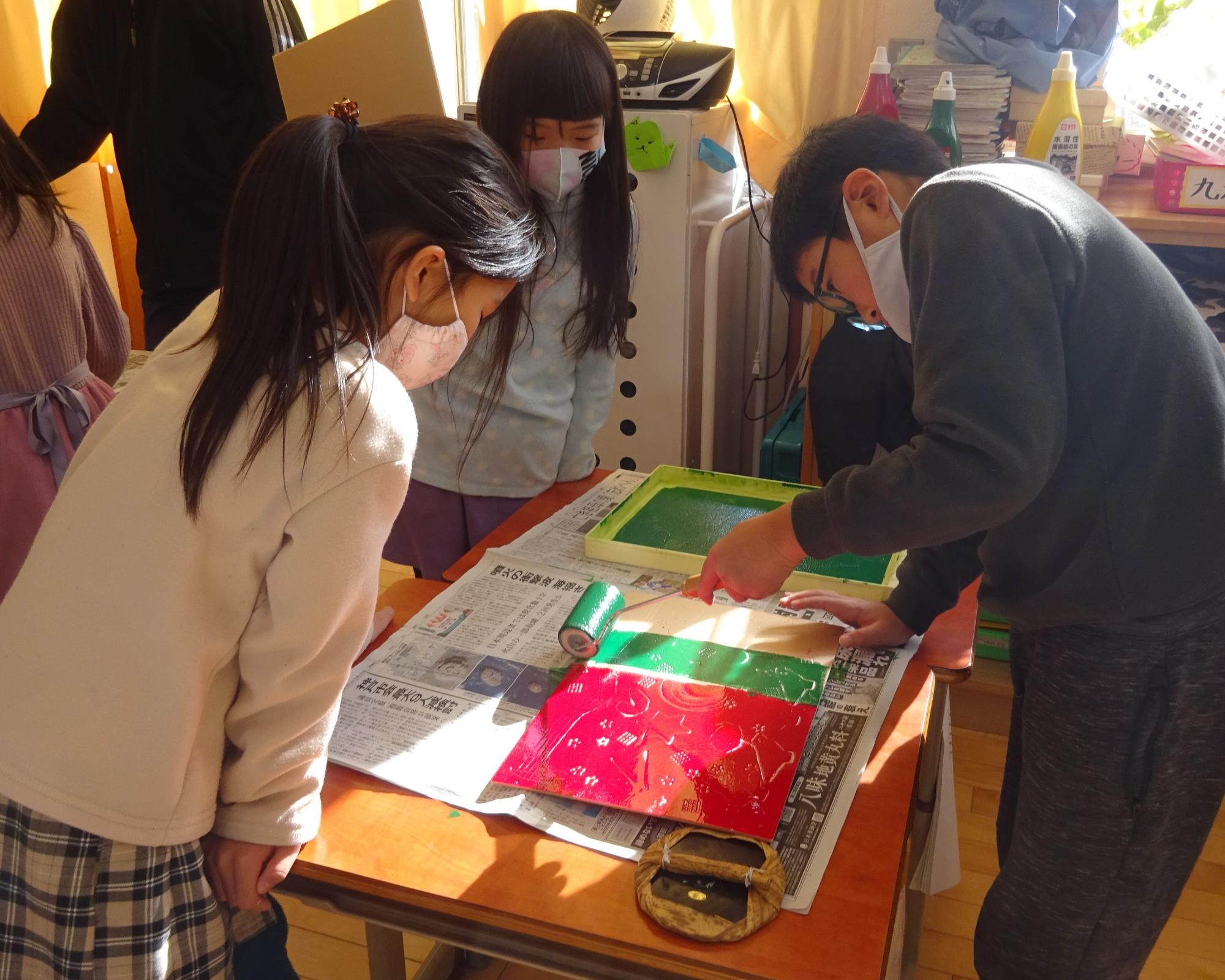 図工「かたちをうつそう」スチレン版画にチャレンジ!