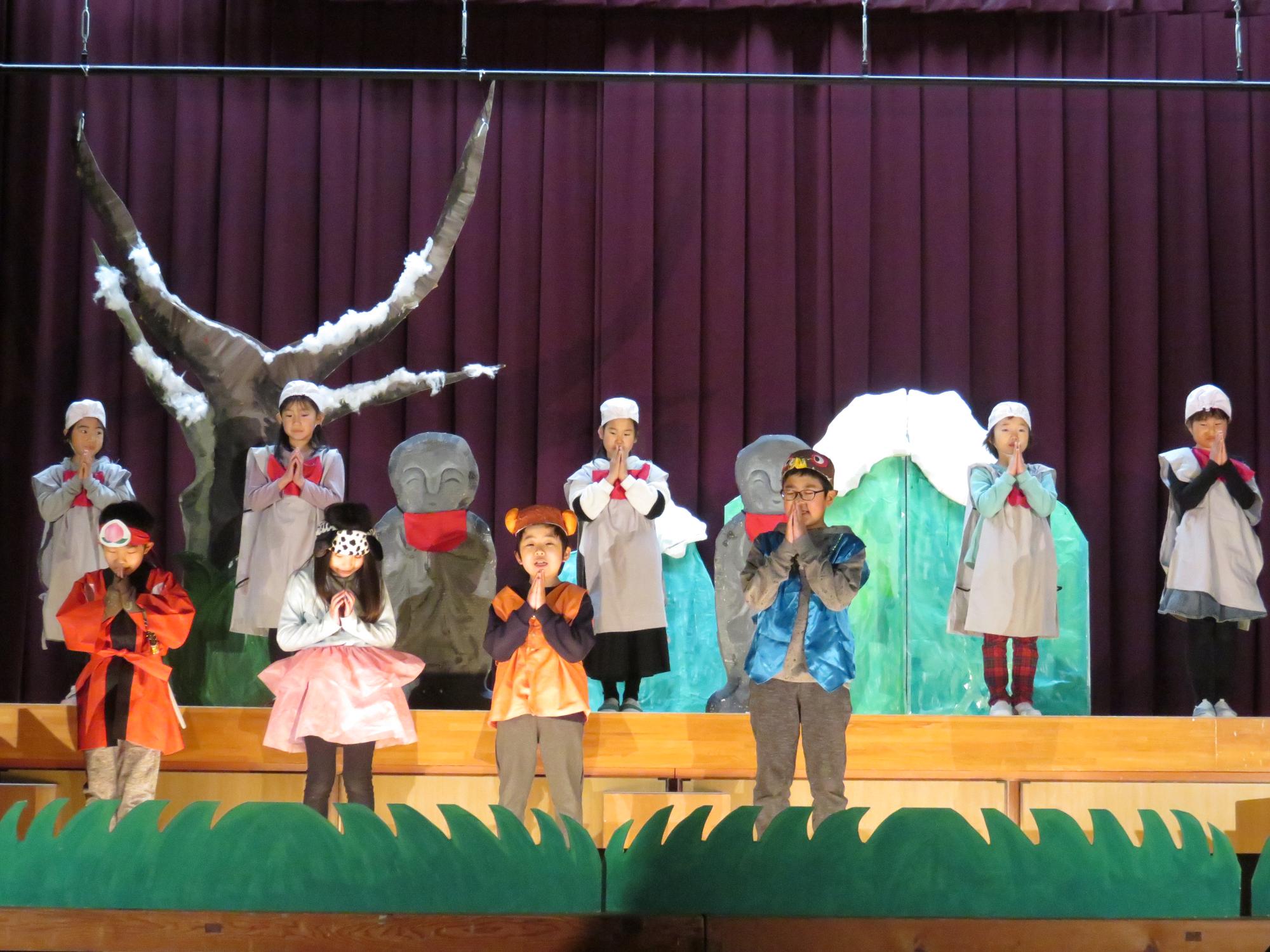 学芸会に向けて、「新劇のかさじぞう」の練習をがんばっています。