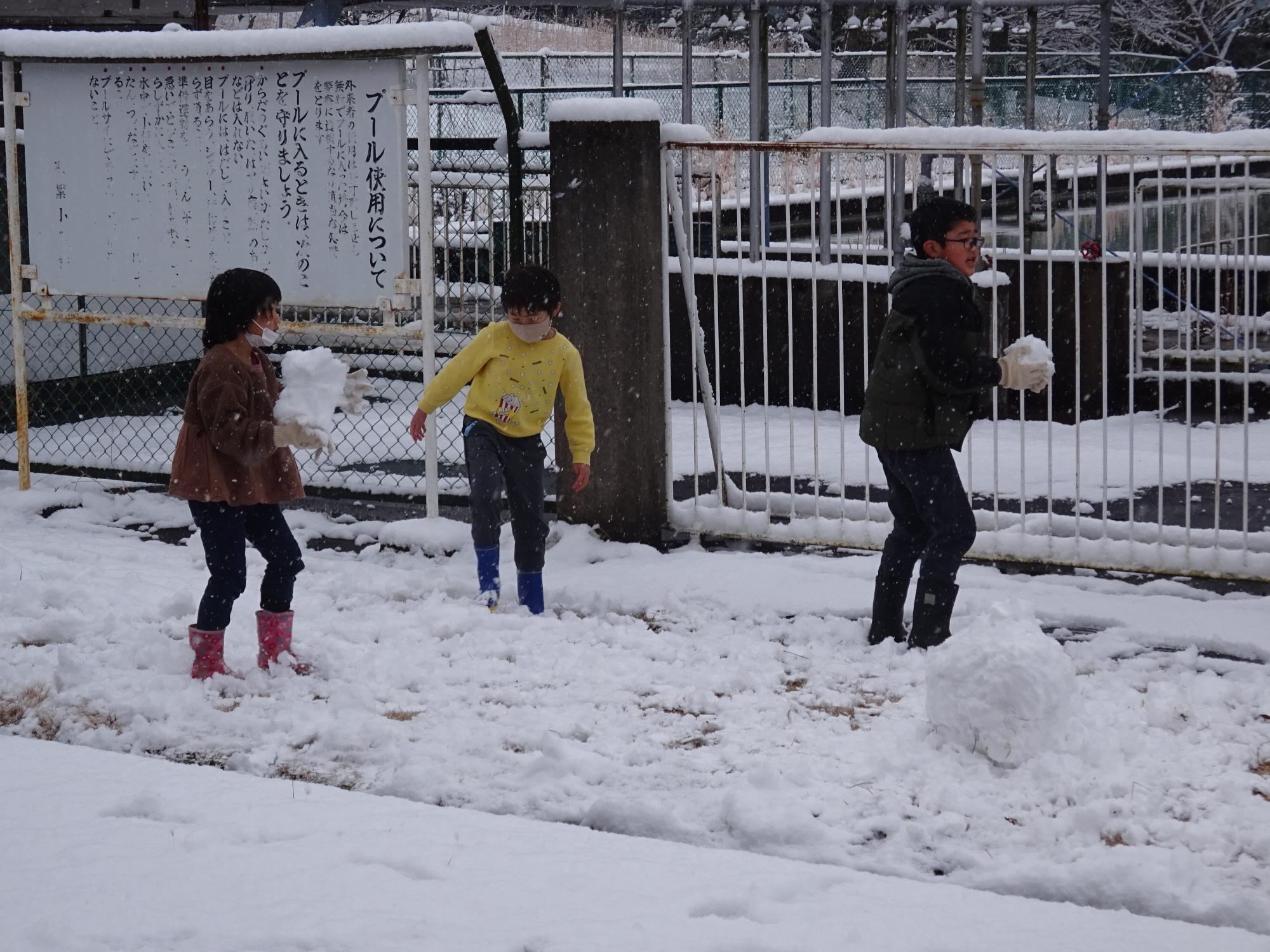 雪合戦をしたり、雪だるまを作ったりして楽しみました。