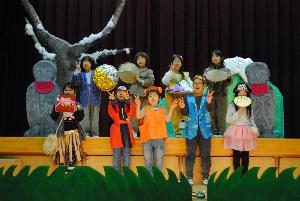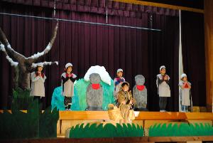 初学芸会の2年生はかさじぞうの改訂版「新劇のかさじぞう」を演じました。