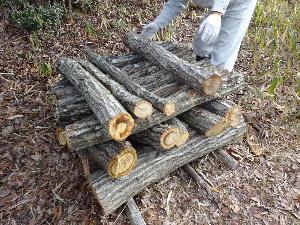 今回は隔年でしている、シイタケの菌植えです。原木は里山委員さんが用意して下さいました。