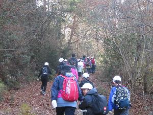 3月4日は恒例の「卒業を祝う会」がありました。縦割り班で近くの西光寺山に登ります。まずは、5年生の掛け声で気合を入れて班ごとに出発しました。