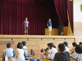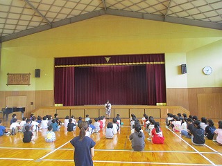 7月18日に1学期の終業式が行われました。校長先生のお話を聞いたり、校歌を歌ったりして1学期の締めくくりをしました。