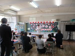 4月8日、8名の新1年生が入学を迎えました。今年は,桜も満開で入学してくる1年生をお祝いしているようでした。新しいランドセルを背負ってちょっと緊張気味に教室に入ってきた1年生も教室の飾りやお祝いの品々ににこにこ笑顔になっていました。