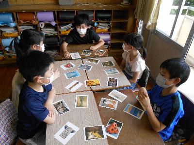 アートカードは図工教材の一つで、様々な絵画や彫刻などが印刷されたカードです。使い方は、いろいろあるのですが、今回は2つのゲームをしました。