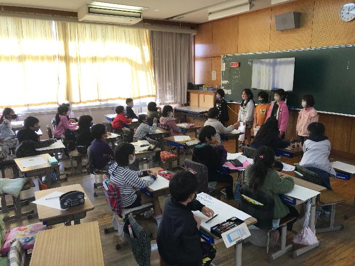 「楠丘校区の素敵を伝えよう」と町探検で聞いてきたことをみんなで交流しました。