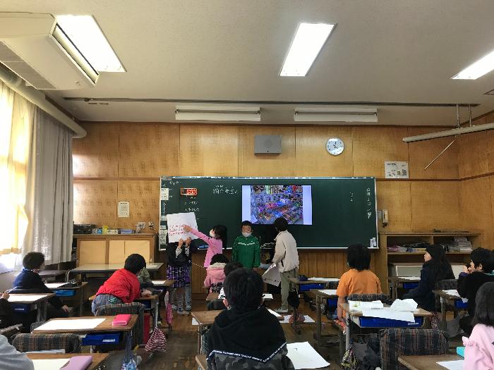 本番では、クイズを交えたり、資料を指さしながら楽しく発表することができました。