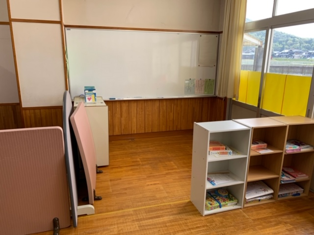 ここは、「きゅうけいスペース(名前は考え中)」です。大きなホワイトボードもあるので、何かはったり、お絵かきできそうですね!
