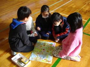 ようちえんの子との交流会 更新日:2017年05月02日 3学期は、「昔あそび」を中心に計画し、進行もしました。1つ目は、百人一首を使っての「ぼうずめくり」。2つ目は、「すごろく」。3つ目は、「フルーツバスケット」です。1年生は、グループに分かれルールを説明したり、進めたりと、とても張り切って活動することができました。どのグループからも笑顔と歓声が聞こえ、なかよく遊ぶことができました。子ども同士のつながりも増え、1年生は、ドキドキわくわくが自信に変わったようで、ちょっぴり誇らしげに見えました。