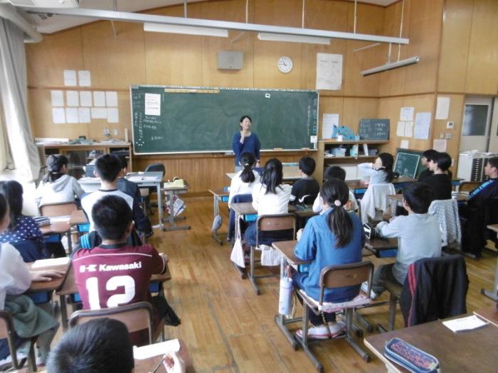この取組は「中学校からの出前授業」というもので、中学校の先生