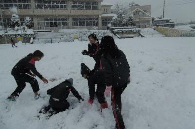 でした。1年に1度あるかないかの雪の日。せっかくなので、1時間目から雪遊び