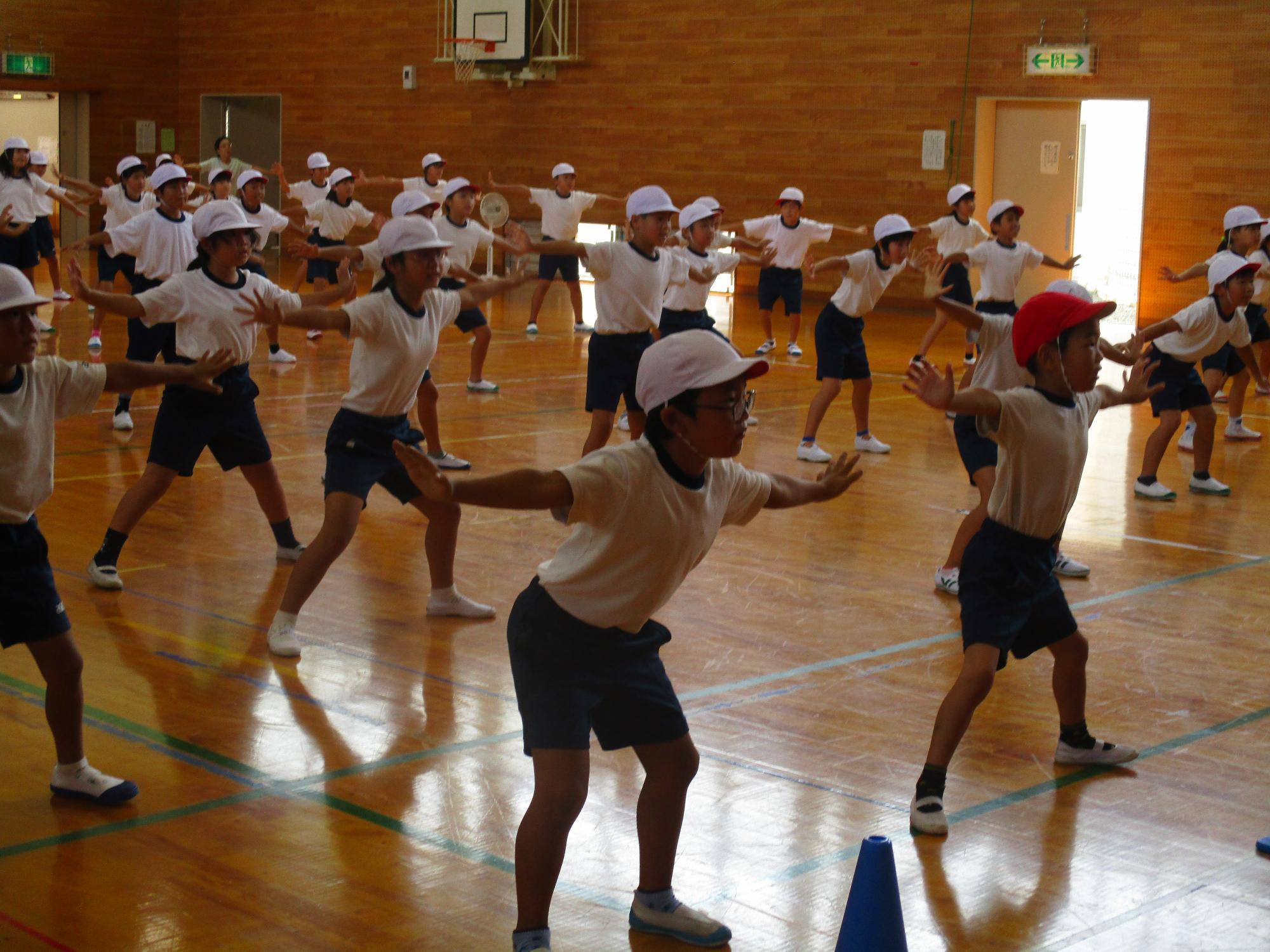 運動会の練習 更新日:2019年09月17日 今年の綱引きは、楠っ子班4色対抗の総当たり戦です。各色とも3回引くという持久戦です。 3・4年生の表現は、よさこいです。みんな暑い中、真剣に練習に取り組んでいます。