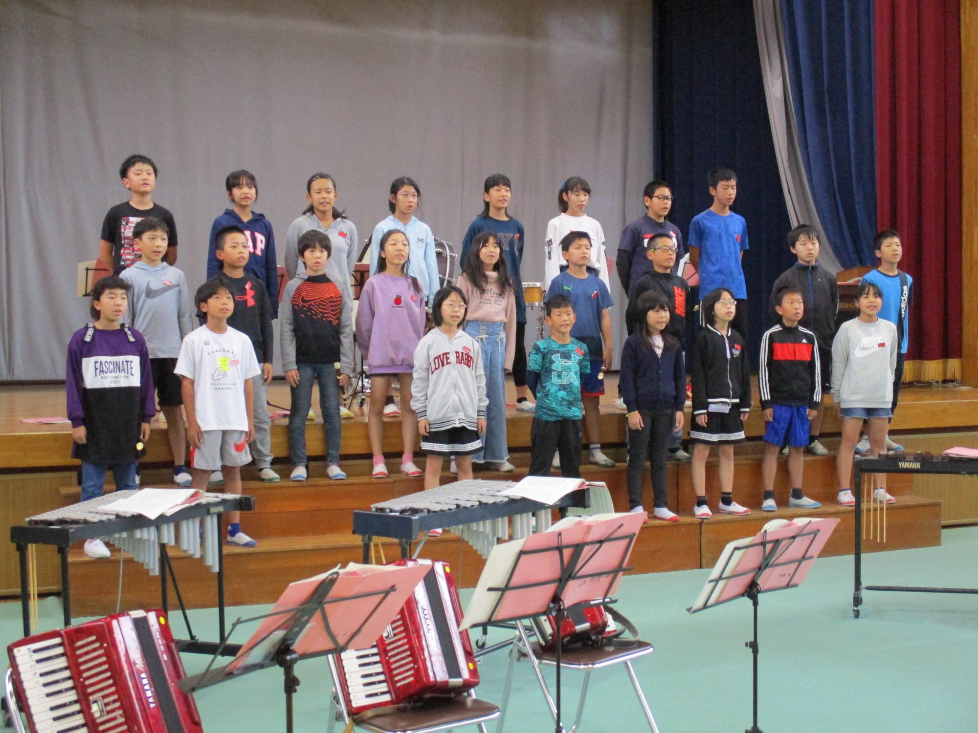 いよいよ今週土曜日に恒例の校内音楽会を開催いたします。子どもたちは音楽会に向けて毎日練習に励んでいます。今年度は、2学年合同での歌唱、合奏を披露することになりました。人数が増えたことにより、声の厚みや音の重なりが増しています。当日は、保護者の皆様だけでなく、地域の皆様にもご来校いただき、ご鑑賞いただければと思います。